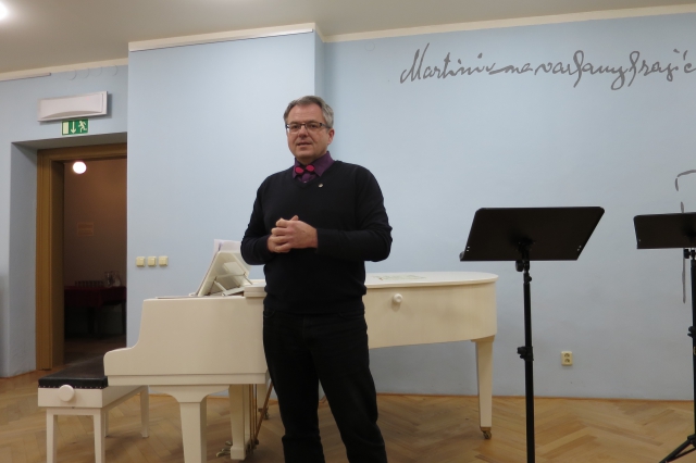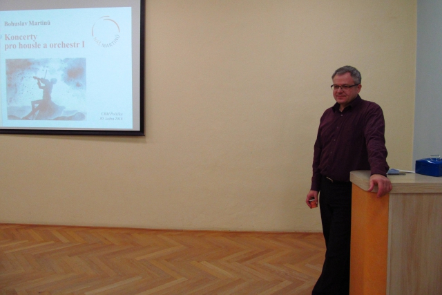 Po velkém zážitku, kdy se našemu spolku podařilo v Poličce uvést premiérové promítání dokumentárního filmu BBC o životě a díle B. Martinů Music of Exile, poté, kdy se v přeplněném sále Tylova domu mohli diváci osobně setkat a besedovat s tvůrci filmu A. Wilkinsonem a B. Largem i s účinkujícími J. Navrátilem a J. Vášou - a my se chvíli cítili tak trochu „světoví“….. vrátily se naše pořady do komorního prostředí sálku CBM.