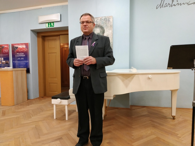 Spolek Náš Martinů oslavil 100. výročí vzniku republiky hned čtyřmi akcemi. Už 27. září, v předvečer svátku sv. Václava, jsme přivítali mužský pěvecký sbor Vocatus Ecumenicus pod taktovkou sbormistra Oldřicha Růžičky. Sbor byl založen v roce 2006 a navazuje na tradici amatérských pěveckých sborů, které zde na pomezí Čech a Moravy vždy působily. Věnuje se pěstování sborové činnosti v duchu vlasteneckých tradic a tomu odpovídá i výběr repertoáru. Pro koncert si sbor připravil skladby českých a slovenských autorů, moravské i české lidové písně, nechyběla ani trocha swingu. Koncert provázel slovem Tomáš Jirků. Večer proběhl v opravdu příjemné vlastenecké atmosféře.