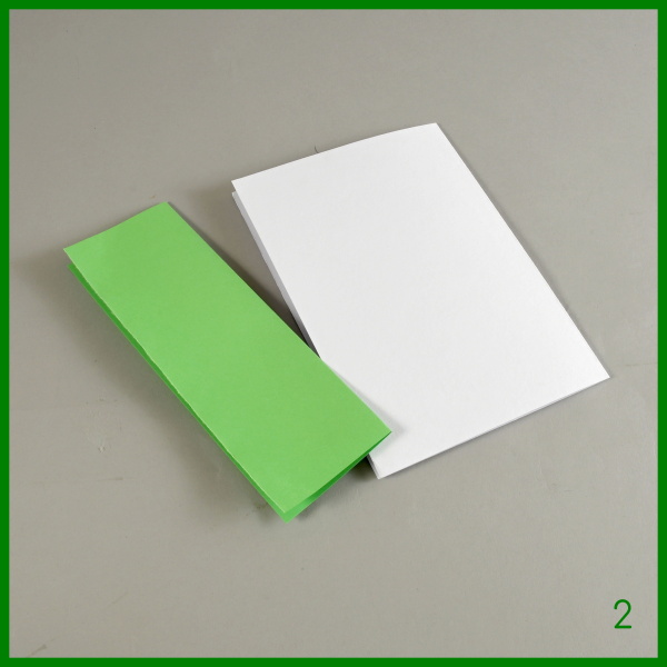 2. barevný papír a čtvrtku přeložte na polovinu a přilepte k sobě